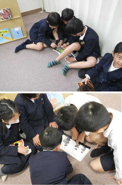 昨日から、えほん広場が行われています。各学級ごどに閲覧する時間もありますが、お昼休みの時間も開放されています。子ども達は1冊の本を囲んで皆で楽しそうに見ています。