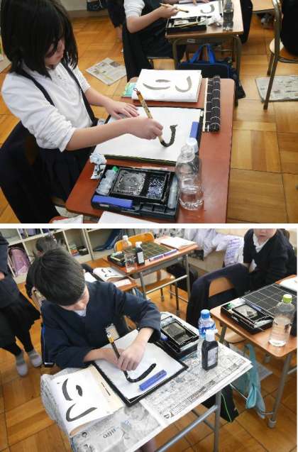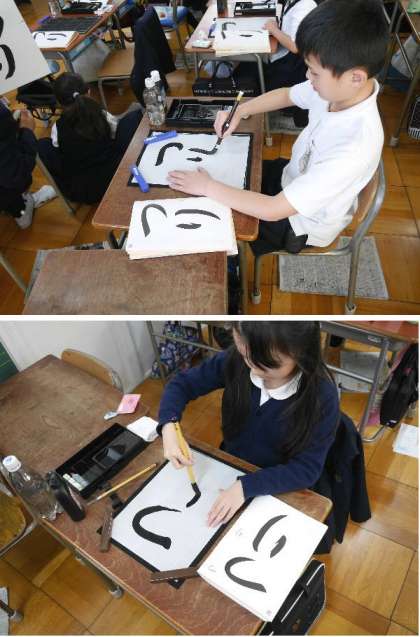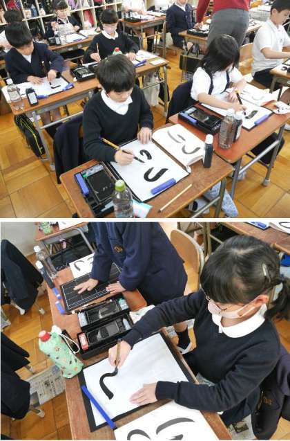 3年生の書写は書道で「つり」と書いています。2文字になるとバランスがむずかしいですね。