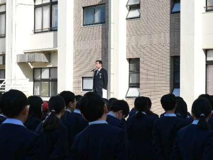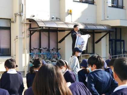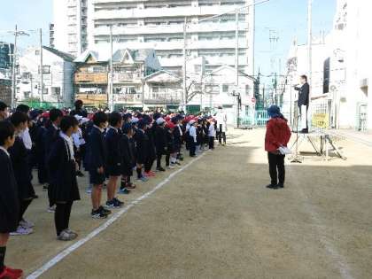 今日の全校朝会は講堂使用中のため運動場で行いました。今日は、東日本大震災からちょうど13年目にあたります。改めて、災害に対する防災について考えてほしいとお話し