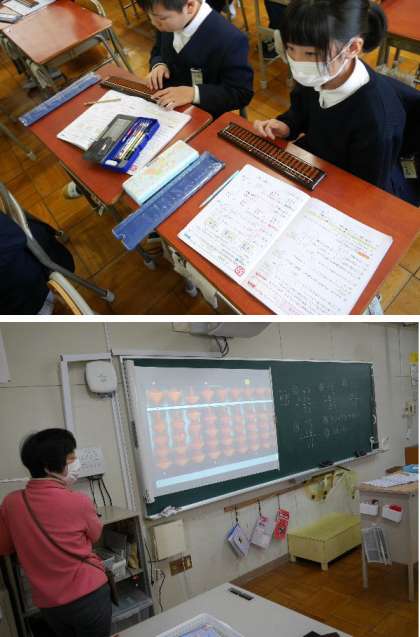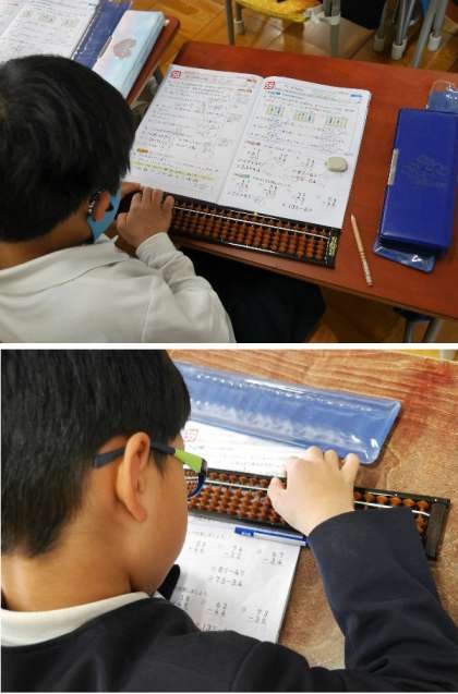3年生では授業をふりかえって学習しています。そろばんでの計算をがんばっていました。
