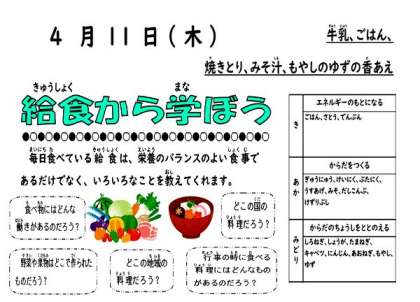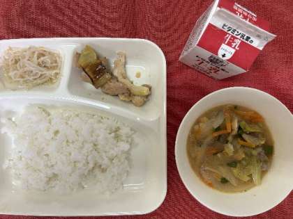 今日の献立は、焼き鳥、みそ汁、もやしのゆずの香あえ、牛乳、ごはんでした。