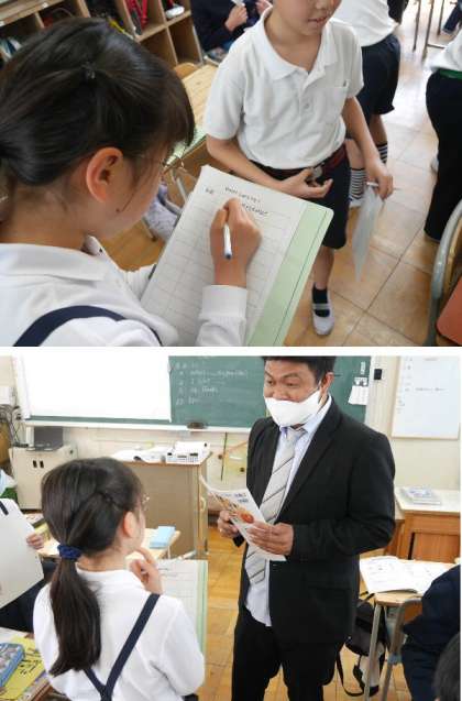 6年生では、好きなな物をお互いに英語で質問しあいます。