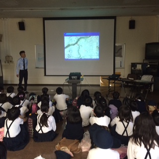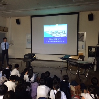 職員の方からの説明を真剣に聞いています。たくさんの知識をクイズ形式で、楽しく学んでいます。