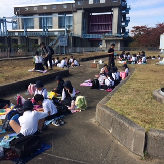 現在の毛馬閘門横でお弁当タイム。