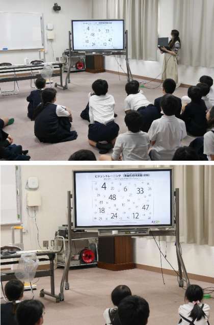 各学級ごとに視力検査を順にしています。6年生が視力検査をしていました。保健室の先生から、目の運動になるクイズがだされました。数字を順に見つけることができましたか。