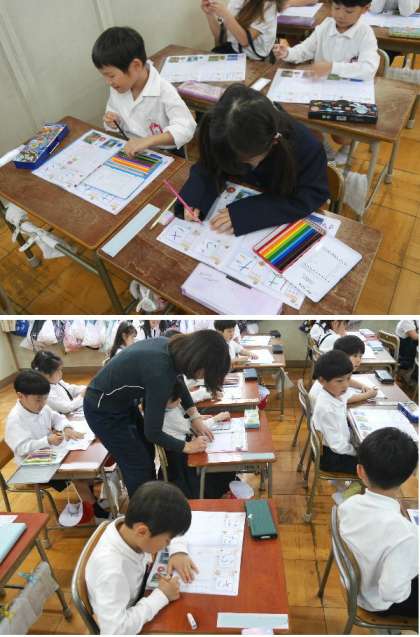 1年生の国語では、毎日、ひらがなの練習をしています。毎日の積み重ねが大切ですね。