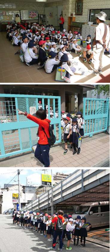 3年生から社会科の授業が始まりました。わたしたちの大阪のことを学習していきます。まずは、小学校の周辺の町を探検していきます。いろいろなお店や、会社、事業所などを目印にして散策します。校区の東側チームと西側チームに分かれて出発です。