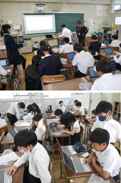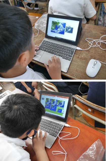5年生の理科では、天気図の雲の動きなどの日本地図をパソコンでまとめていました。画像を編集するのも慣れてきました。