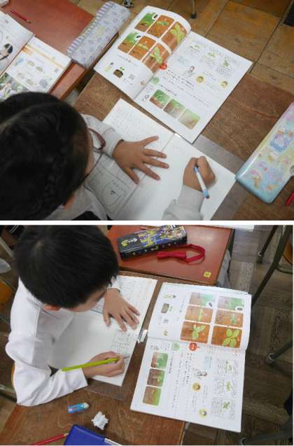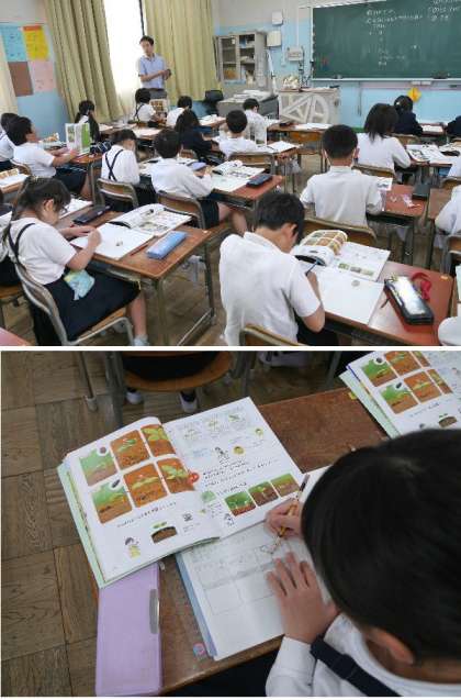 3年生の理科では、ホウセンカとヒマワリの種のちがいや種の撒き方をまとめ学習していました。