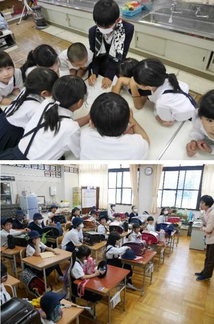 集団登校の分団で集まって、朝の集合時刻や通学路について確認しました。
