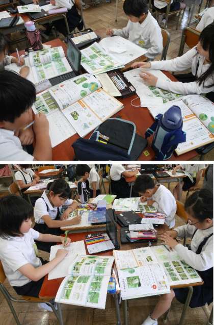 3年生の理科では、ちょうちょの幼虫の様子などノートにまとめていました。