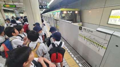 5年生が社会見学でハグミュージアムに出かけます。地下鉄 鶴見緑地線 京橋駅から乗ります。