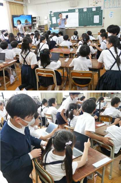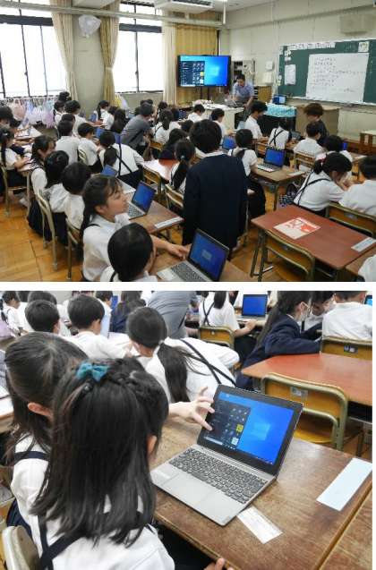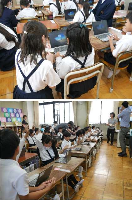 1年生のパソコンの整備を現在進めています。そろったところから、6年生が1年生の教室に来てくれて、1年生にパソコンの電源入れ方やログインのしかたを教えてもらいました。
