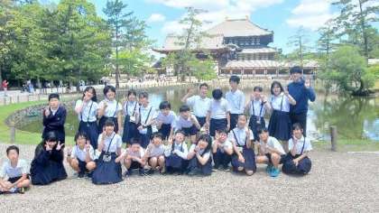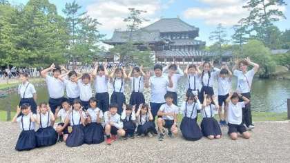 大仏殿をバックに記念撮影です。