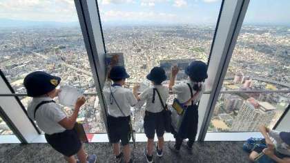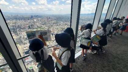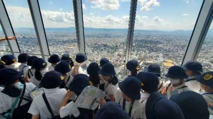 班に分かれて見学です。とても天気がよく、遠くまで見えます。