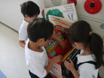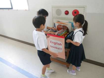 英語の絵本の回覧を6年生からしています。2年生までまわってきました。