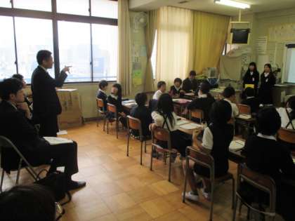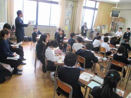 後ろでお話されている方々は、「こんな学習机がほしかってん!」と思えるような学習机を考えよ!とのミッション(任務)を子どもたちに授けたイトーキの皆様です。