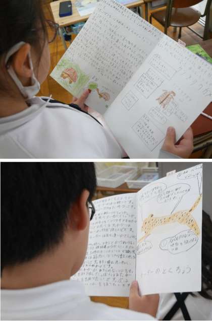 4年生では、それぞれがいろいろな動物などの生き物について調べてリーフレットにまとめました。クラスの一人一人のリーフレットを集めると図鑑になりますね。今日は、みんなの作ったリーフレットを読みあっていました。いろいろな生き物があって面白いです。