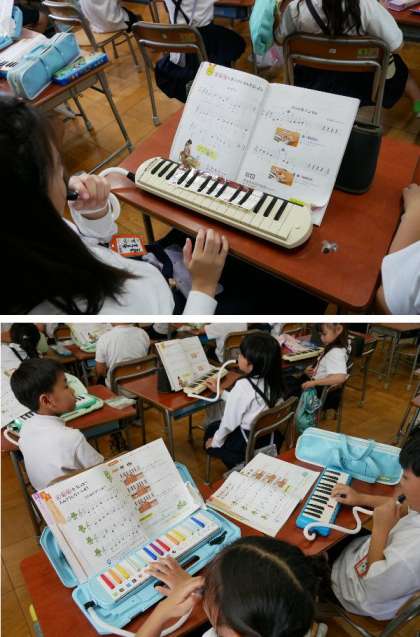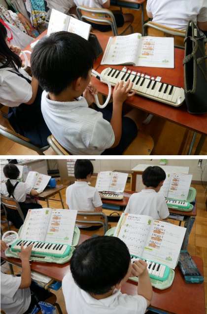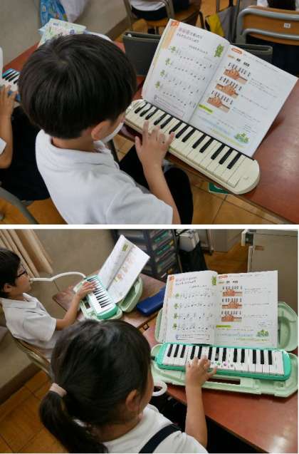 2年生の音楽では、鍵盤ハーモニカで演奏をします。「かっこう」を練習していました。