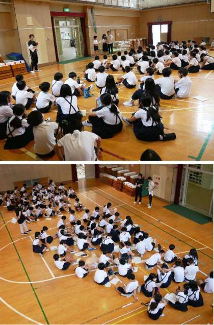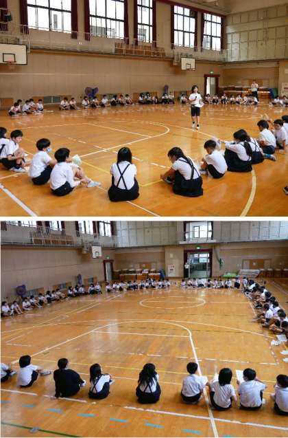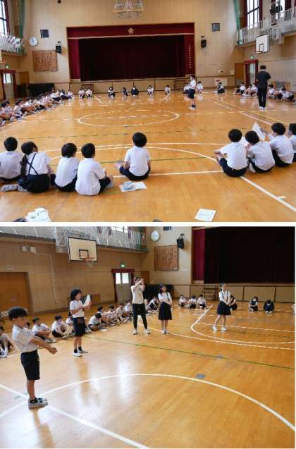 5年生は来週に2泊3日の林間学習に出かけます。今日は、出発式やキャンプファイヤの体形や司会の練習をしました。