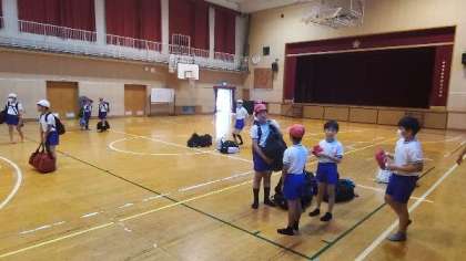 今日から二泊3日で、5年生が林間学習に出かけます。朝早くに集合です。