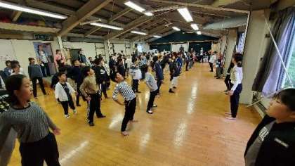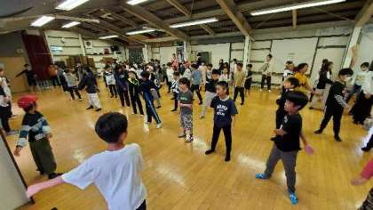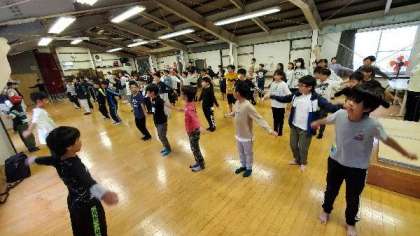 6時30分から朝のつどいを多目的ホールで行いました。早朝から雨が降っています。