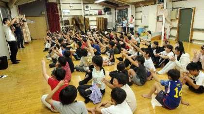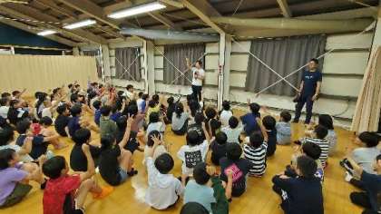 雨でできなかったものもあり、時間が空いたので、皆でミニレクリエーションをしました。負けるじゃんけん大会です。