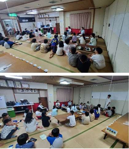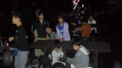 夕食のあと、多目的ホールで夜のつどいをして、ナイトハイクに出かけました。ホタルも見ることができました。宿舎に戻り、就寝準備、班長会議がありました。