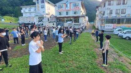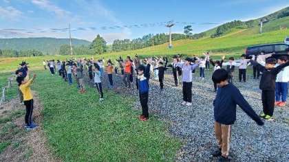6時30分から、つどいの広場で朝会を行いました。ラジオ体操をしっかりしました。