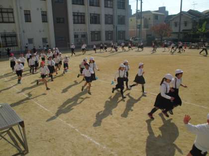 全力ダッシュではなく、最後まで走り通すことをめあてにして、どれだけたくさん周回できるかに挑戦しています。