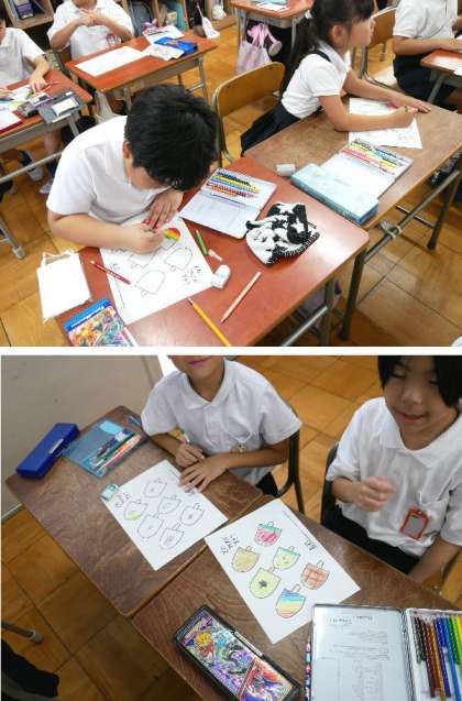 夏においしいアイスクリームのデザインを考えました。いろいろなアイスができあがりましたね。