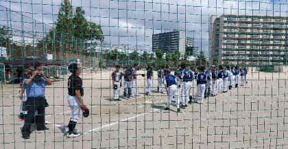区PTA男子ソフトボール大会が友渕小学校を会場にして開催されました。今年はひがみや単独でのチーム出場です。台風一過、白熱した試合が行われました。