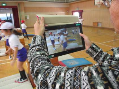 先生も、体育などで子どもの姿を写したり、子どもたちの考えを拾い上げたりといった活用をしています。