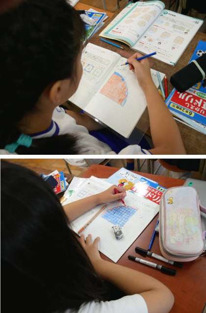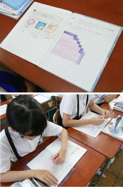 6年生の算数では、円の面積について、おおよそのどのくらいなのかを考えています。1辺が1センチの正方形がいくつあるかを数えて考えます。