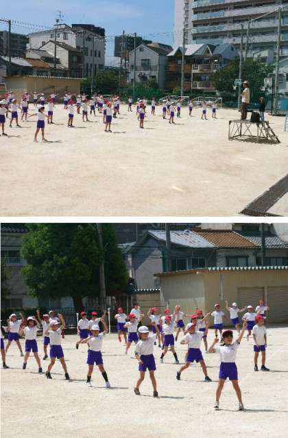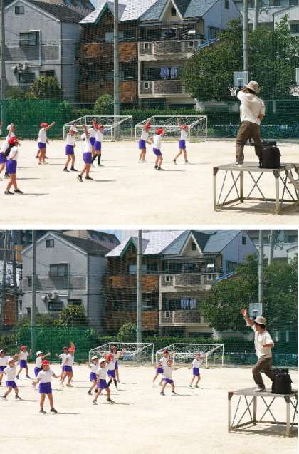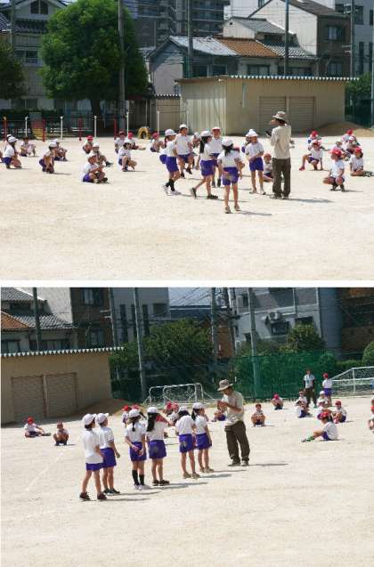 3年生が運動会の隊形や位置の確認を運動場でおこなっていました。