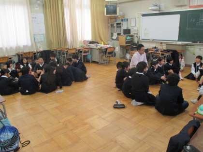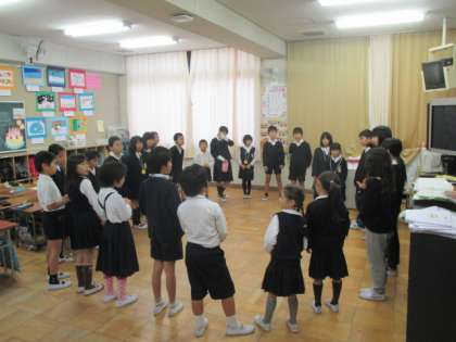 講堂が工事中のため、全児童が集合する児童集会はしばらくできません。