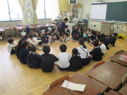 そこで、木曜日の児童集会は、たてわり班ごとに各教室に分かれて活動することにしました。