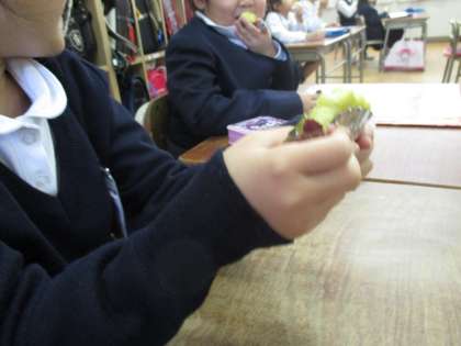 1年生もおすそ分けしました(写真右)。