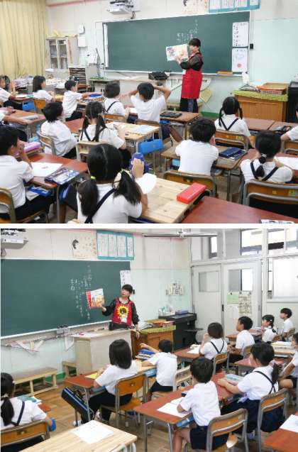 連休あけの火曜日、地域「ひまわり」さんに、読み聞かせを3年生でしていただきました。