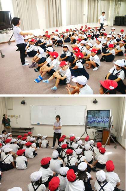 1年生は多目的室で、運動会の個人走で走るメンバーを確認しました。昨年の1年のビデオをみて、競技の流れを確認しました。