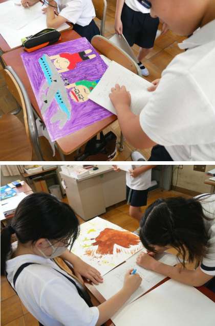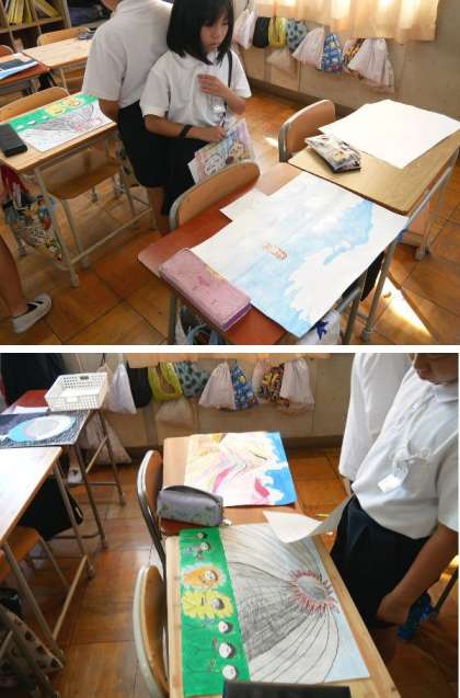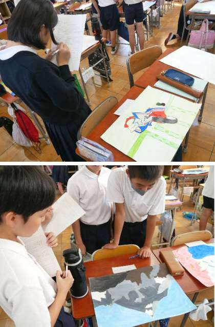 6年生で出来上がった作品を、相互に鑑賞しあって感想を書いています。