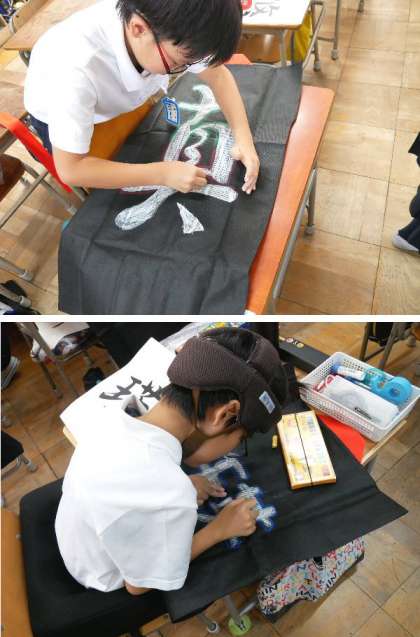 5年生の運動会の団体演技のソーランで、子ども達が切るハッピを作りました。背に1文字の漢字がポイントです。
