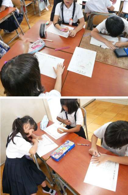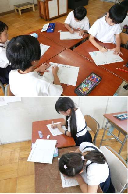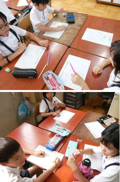 2年生は先日、まち探検のために校区をめぐりました。次回のまち探検て訪問するお店に行って、いろいろなインタビューをします。何を聞くのかを班で考えています。