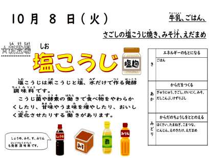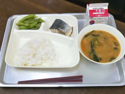 今日の献立は、さごしの塩こうじ焼き、みそ汁、えだまめ、牛乳、ごはんでした。