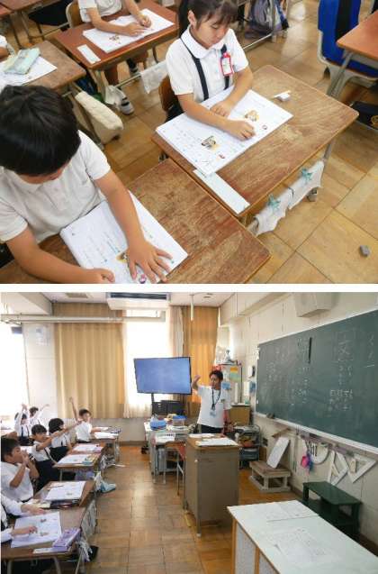 1年生の国語では、漢字の学習を毎日しています。書き順を、指でなぞったりして何度も身につくようにがんばっています。