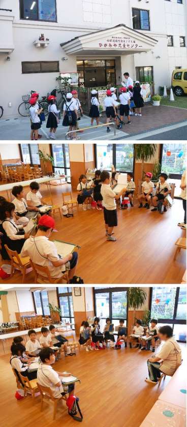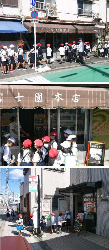 児童センター、自動車会社、お茶屋、郵便局、酒店、自転車屋、お風呂屋、パン屋さんに、グループで分かれて訪問しました。