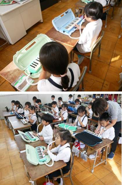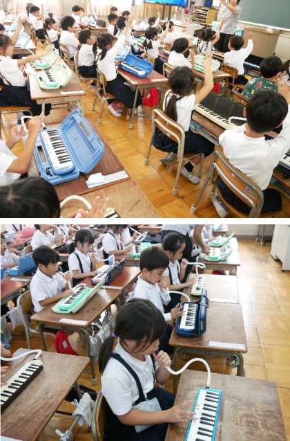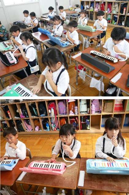 1年生の音楽では、鍵盤ハーモニカを使って演奏をします。ドレミファ・・もだいぶ弾けるようになってきました。