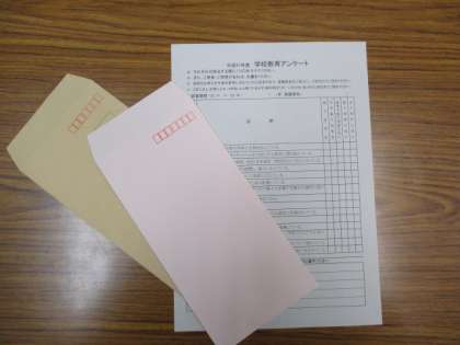 写真下は「学校アンケート」です。小さい封筒に入れてください。