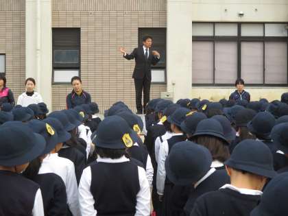 校長先生の声が元気なのはもちろんですが、たくさん集まっても静かに聞くことができる子どもたちの態度があってこそです。