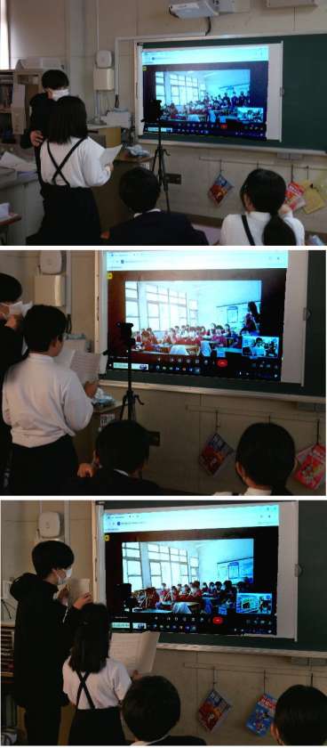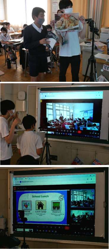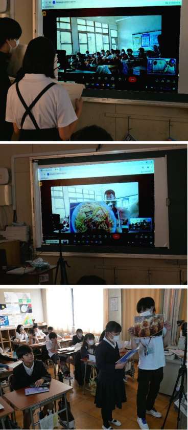 10月28日 6年英語海外交流!台湾の小学校と交流 公開日 2024/10/28 更新日 2024/10/28 学校生活 6年生が、台湾の小学校とインターネットで接続して英語で交流しています。それぞれの国の食べ物の紹介をしていました。給食についても情報交換しました。 あらかじめ用意した写真を使って、日本の料理について説明を一生懸命にしていました。 いいね(0)